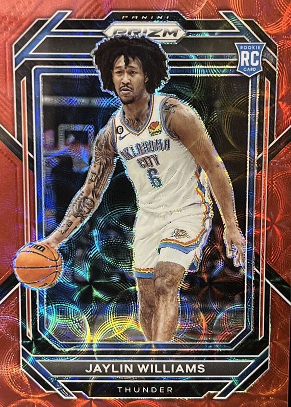 The Jaylin Williams 2022 Prizm #247 Choice Red /88 Rookie card in Raw condition has moved down -$0.22 (-3.7%) in the last 30 days and was last sold for $5.78 .
