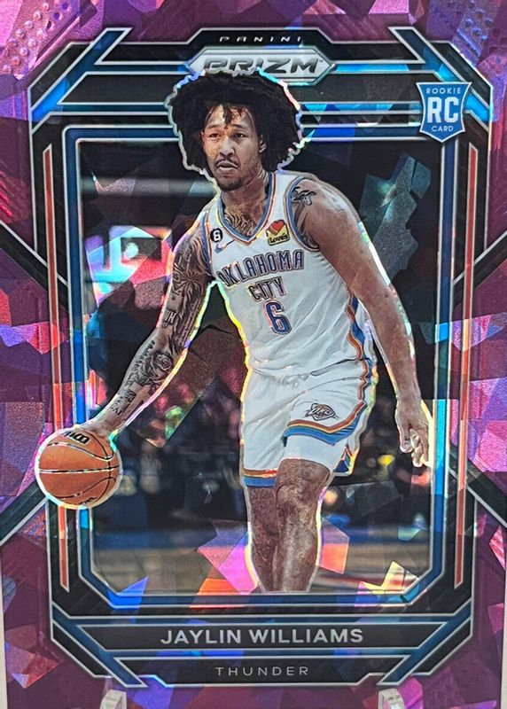 The Jaylin Williams 2022 Prizm #247 Purple Ice /149 Rookie card in Raw condition has not changed in price in the last 30 days and was last sold for $4.03 .