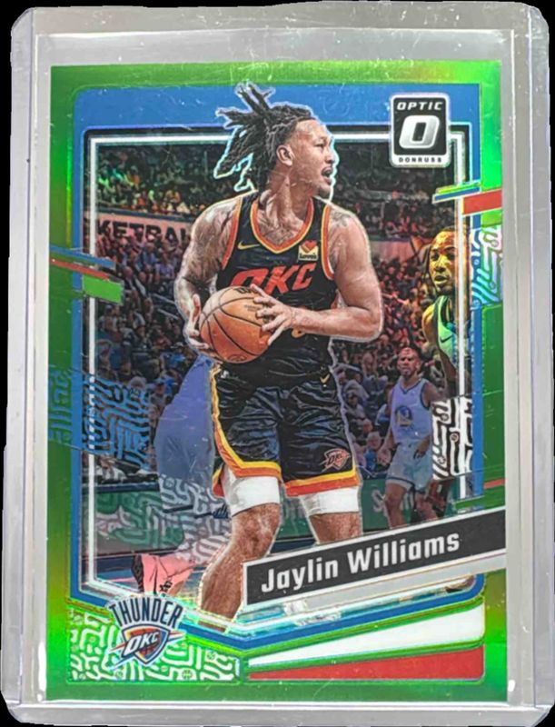 The Jaylin Williams 2023 Optic #150 Lime Green /149 card is 1 of 55 Jaylin Williams' card variations in the 2023 Optic set being tracked by Sports Card Investor, including Base, Blue Velocity, Checkerboard, Choice Red & Green, and Fast Break.