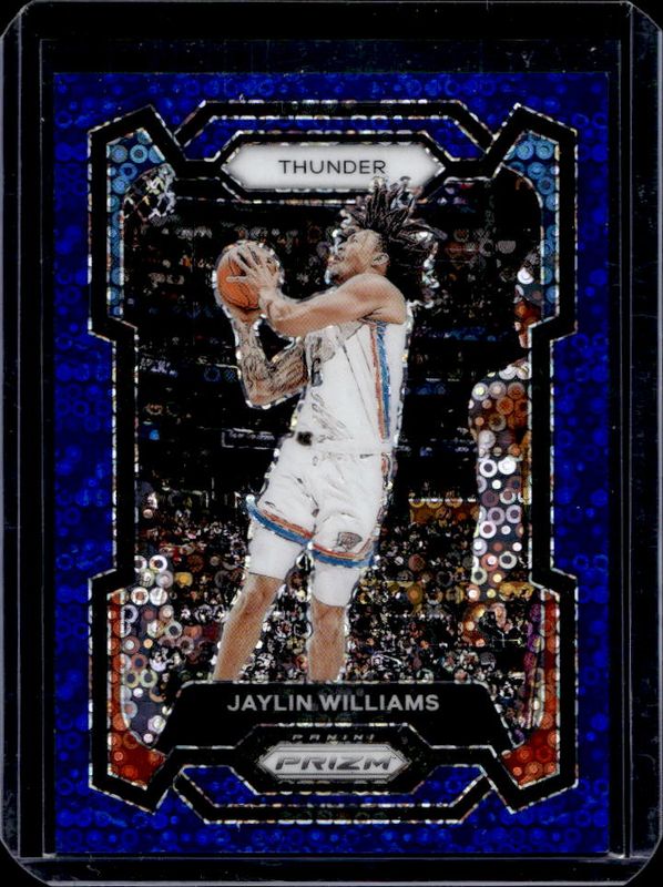 The Jaylin Williams 2023 Prizm #214 Fast Break Blue /150 card is 1 of 66 Jaylin Williams' card variations in the 2023 Prizm set being tracked by Sports Card Investor, including Base, Blue Wave, Choice Blue Yellow Green, Fast Break, and Green.