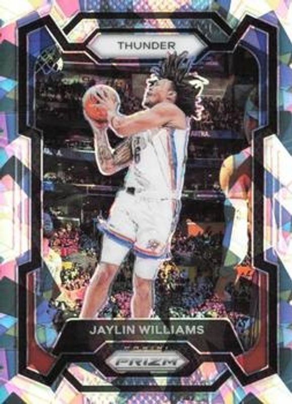 The Jaylin Williams 2023 Prizm #214 Ice card is 1 of 66 Jaylin Williams' card variations in the 2023 Prizm set being tracked by Sports Card Investor, including Base, Blue Wave, Choice Blue Yellow Green, Fast Break, and Green.