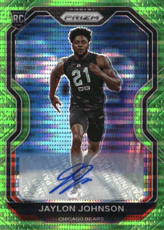 2020 Panini Prizm Jaylon Johnson Rookie Auto Neon Green Pulsar #306 Bears