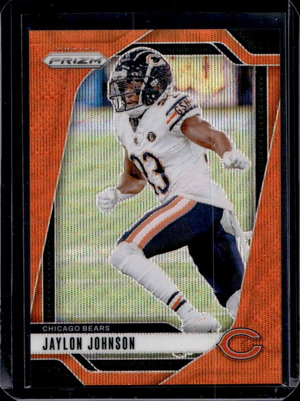 The Jaylon Johnson 2024 Prizm #51 Orange Wave /60 card is 1 of 84 Jaylon Johnson's card variations in the 2024 Prizm set being tracked by Sports Card Investor, including Base, Choice Blue Yellow Green, Choice Silver, Disco, and Green.