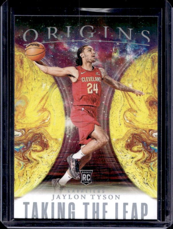 The Jaylon Tyson 2024 Origins #4 Taking the Leap Rookie card is 1 of 64 Jaylon Tyson's card variations in the 2024 Origins set being tracked by Sports Card Investor, including Base, Basketballs, Cosmos, Tessellated, and Red /299.