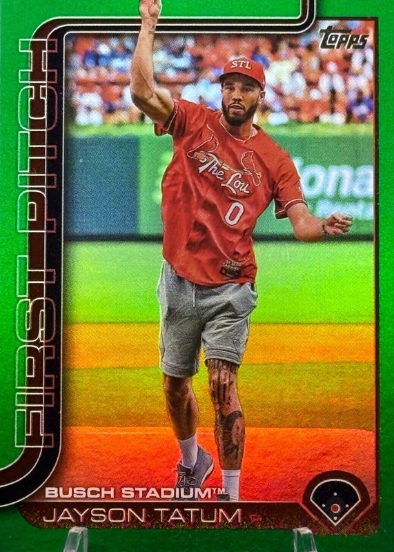 2025 Topps Jayson Tatum First Pitch Green Foil #84/99 St. Louis Cardinas