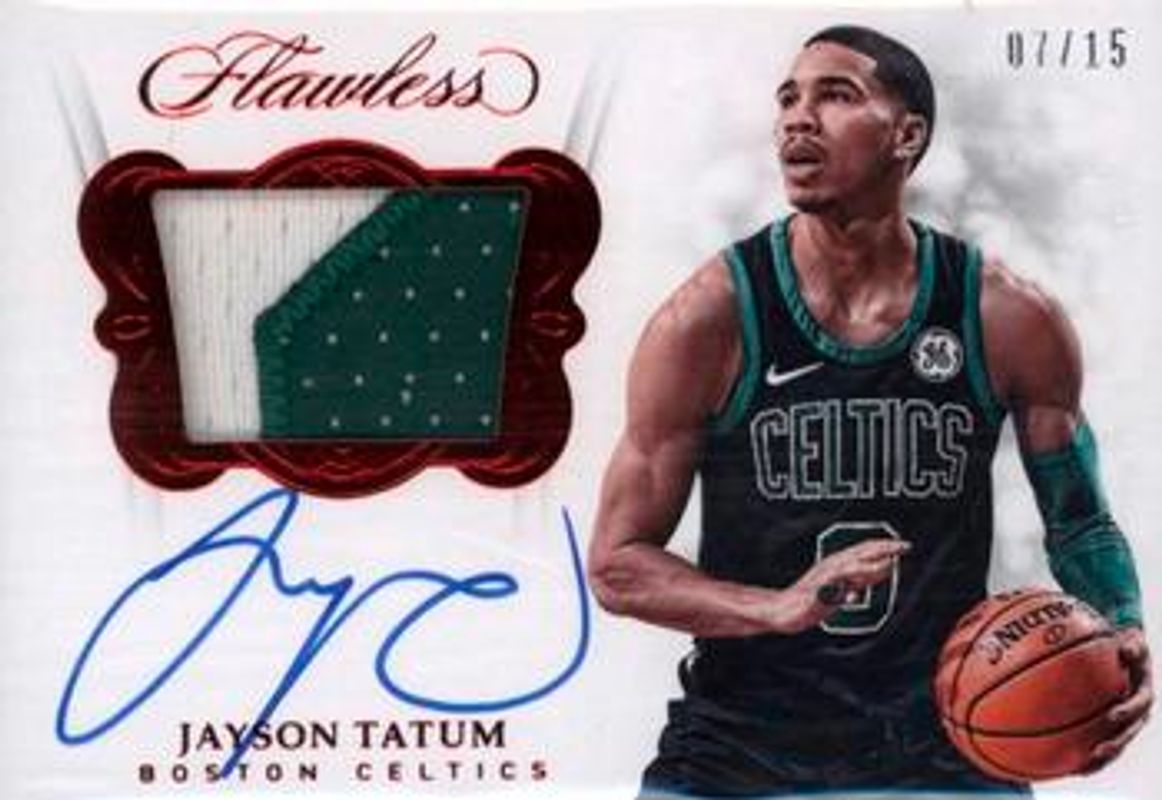 Jayson Tatum 2017 Flawless #SM-JT Signatures Prime Materials - Ruby /15 Rookie RAW Price Guide