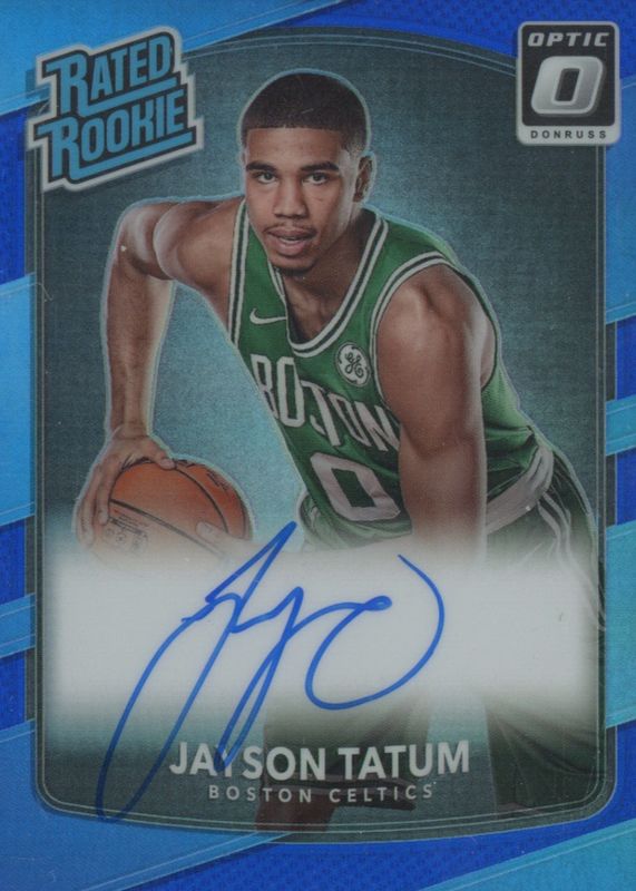 The Jayson Tatum 2017 Optic #198 Rated Rookie Signatures - Black /1 card in Raw condition has not changed in price in the last 30 days and was last sold for $1,579.00 .