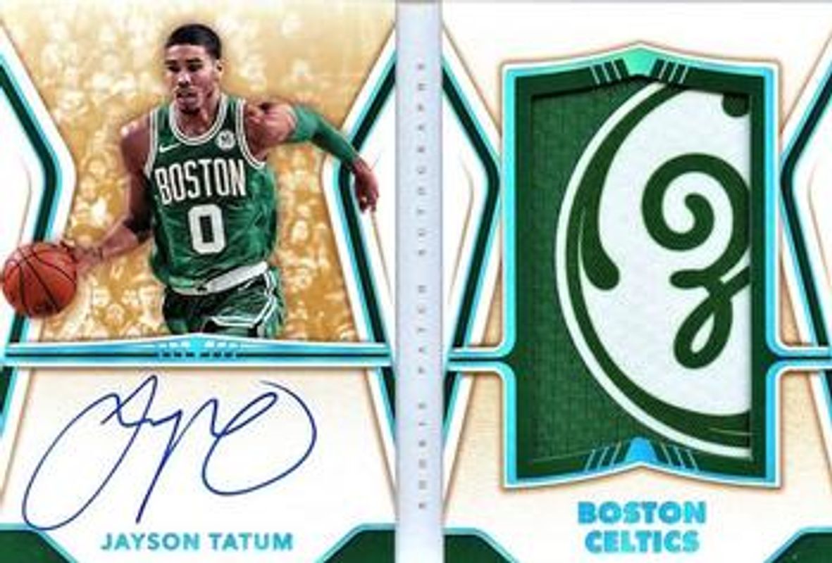 The Jayson Tatum 2017 Opulence #RPB-JTT Rookie Patch Autographs Booklets Brand Logo /5 card is 1 of 18 Jayson Tatum's card variations in the 2017 Opulence set being tracked by Sports Card Investor, including #125 Base /79, #146 Base /79, #26 Base /79, #26 Silver /25, and #125 Silver /25.