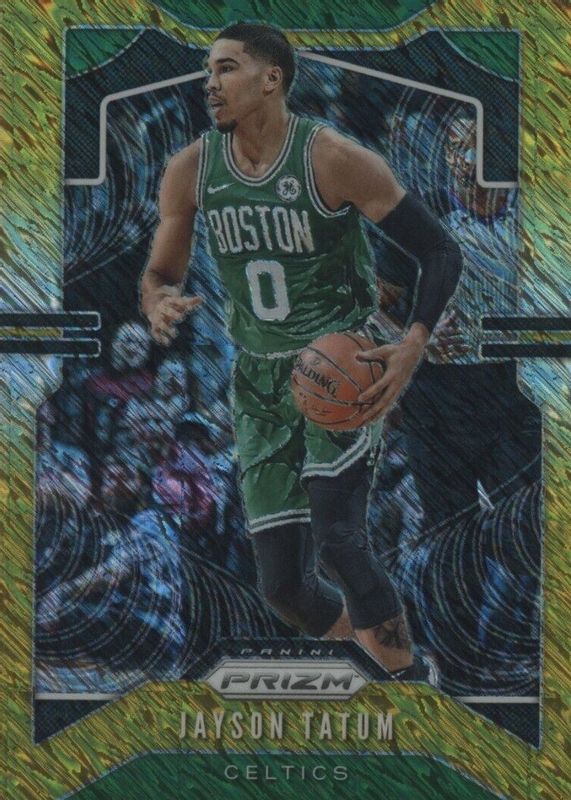 This card is 1 of 40 Jayson Tatum's card variations in the 2019 Prizm set being tracked by Sports Card Investor, including Base, Choice Blue Yellow Green, Fanatics Green Ice, FOTL Blue Shimmer, and Hyper.