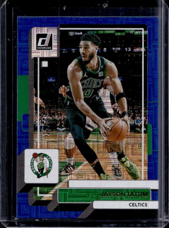 The Jayson Tatum 2022 Donruss #1 Choice Blue /49 card is 1 of 65 Jayson Tatum's card variations in the 2022 Donruss set being tracked by Sports Card Investor, including Base, Holo Green Laser, Holo Red & Gold Laser, Press Proof Silver, and Yellow Flood.