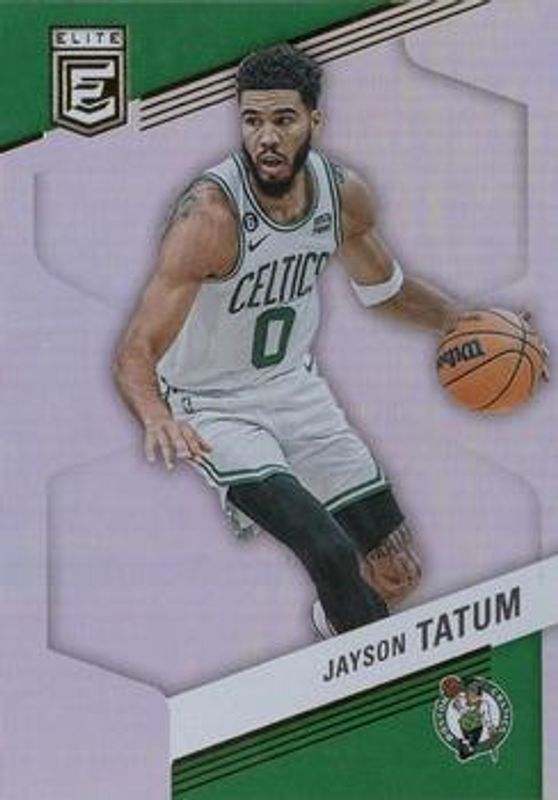 The Jayson Tatum 2022 Elite #9 Base card is 1 of 55 Jayson Tatum's card variations in the 2022 Elite set being tracked by Sports Card Investor, including Asia Exclusive, Asia Hyper Red & Green, Aspirations, Orange, and Status.