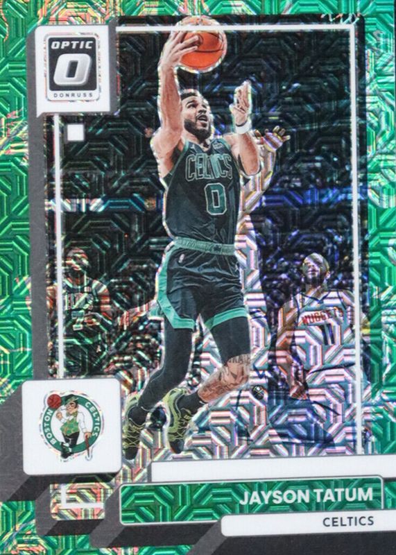 This card is 1 of 74 Jayson Tatum's card variations in the 2022 Optic set being tracked by Sports Card Investor, including Premium Box Set /249, Orange /199, Blue Sparkle /180, Lime Green /149, and Copper Glitter /99.