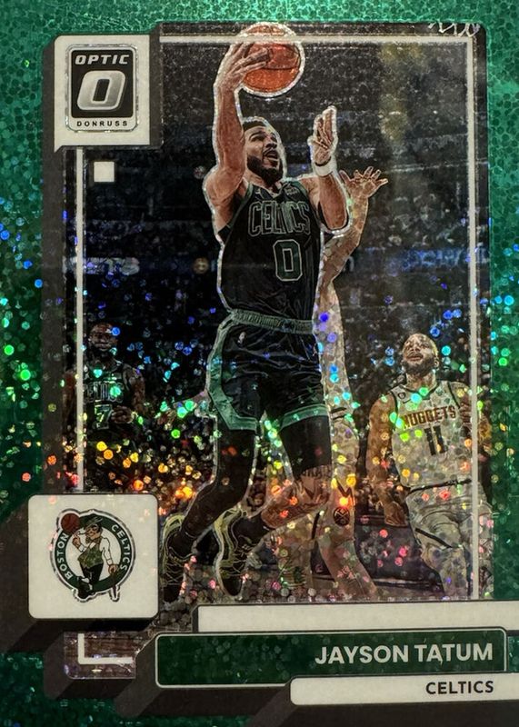 This card is 1 of 74 Jayson Tatum's card variations in the 2022 Optic set being tracked by Sports Card Investor, including Premium Box Set /249, Orange /199, Blue Sparkle /180, Lime Green /149, and Copper Glitter /99.