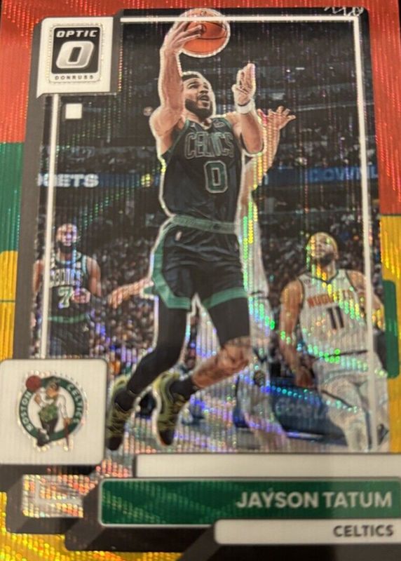 This card is 1 of 131 Jayson Tatum's card variations in the 2022 Optic set being tracked by Sports Card Investor, including Base, Checkerboard, Choice Red & Green, Fast Break, and Green Shock.