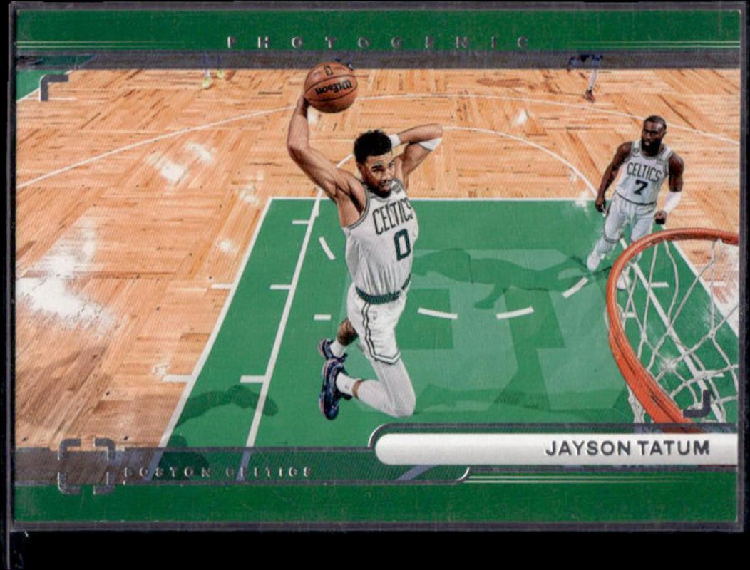 The Jayson Tatum 2022 Photogenic #4 With Authority card is 1 of 22 Jayson Tatum's card variations in the 2022 Photogenic set being tracked by Sports Card Investor, including Base /999, Silver /99, Diamond /75, Maze /25, and Gold /10.