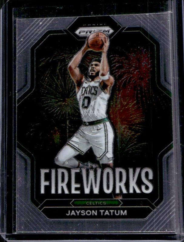 The Jayson Tatum 2022 Prizm #5 Fireworks card is 1 of 93 Jayson Tatum's card variations in the 2022 Prizm set being tracked by Sports Card Investor, including Base, Blue Wave, Choice Blue Yellow Green, Fast Break, and Green.