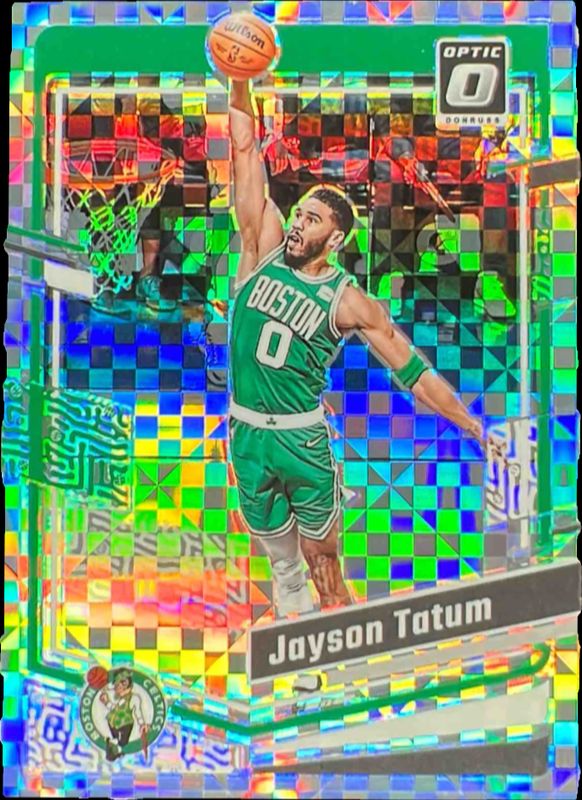 The Jayson Tatum 2023 Optic #140 Checkerboard card is 1 of 137 Jayson Tatum's card variations in the 2023 Optic set being tracked by Sports Card Investor, including Base, Blue Velocity, Choice Red & Green, Fast Break, and Green Shock.
