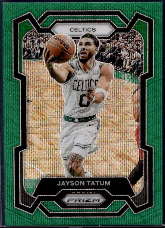 The Jayson Tatum 2023 Prizm #2 Green Wave card is 1 of 100 Jayson Tatum's card variations in the 2023 Prizm set being tracked by Sports Card Investor, including Base, Blue Wave, Choice Blue Yellow Green, Fast Break, and Green.