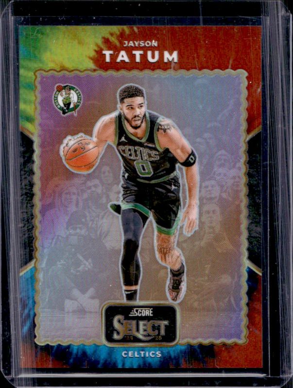 The Jayson Tatum 2024 Select #4 Score Select Throwback Tie-Dye /25 card is 1 of 301 Jayson Tatum's card variations in the 2024 Select set being tracked by Sports Card Investor, including Concourse, Courtside, Mezzanine, Premier Level, and Concourse Blue Cracked Ice.