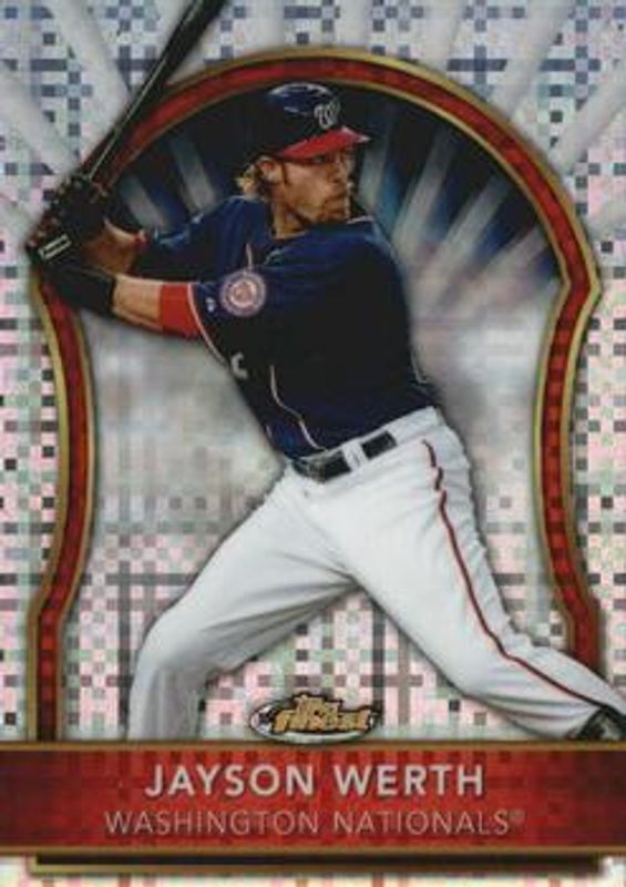 The Jayson Werth 2011 Topps Finest #38 X-Fractor /299 card is 1 of 15 Jayson Werth's card variations in the 2011 Topps Finest set being tracked by Sports Card Investor, including Base, Refractor /549, Green Refractor /199, Orange Refractor /99, and Gold Refractor /50.