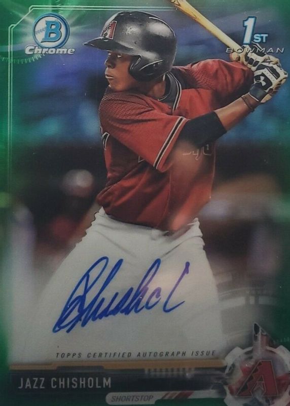 Auctions Ending Soon for Jazz Chisholm Jr. 2017 Bowman Chrome #CPA-JC Prospect Auto - Green Refractor /99 (1st) RAW