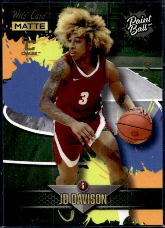 The JD Davison 2022 Wild Card Matte #PB-10 PaintBall Blue orange Splotch /25 Rookie card is 1 of 535 JD Davison's card variations in the 2022 Wild Card Matte set being tracked by Sports Card Investor, including Base, 5 Stripe Black, 5 Stripe White, Black, and Blue Chase.