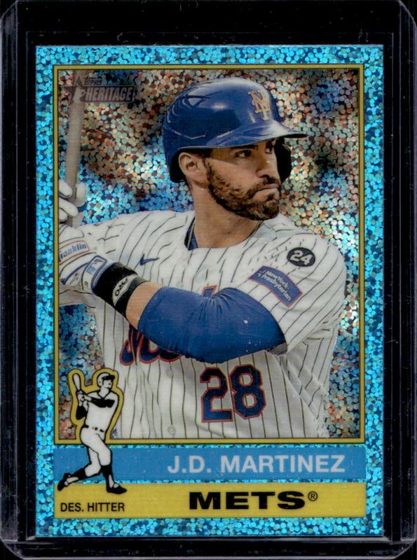 The JD Martinez 2025 Topps Heritage #316 Chrome - Aqua Sparkle Refractor card is 1 of 24 JD Martinez's card variations in the 2025 Topps Heritage set being tracked by Sports Card Investor, including Base, Black Border, Dark Blue Border, Dark Green Border, and Dark Yellow Border.