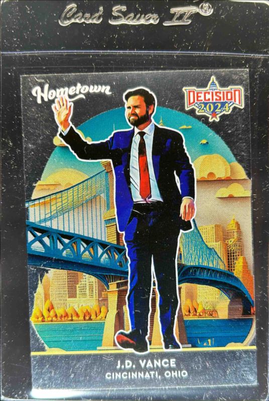 The JD Vance 2024 Decision #HT6 Hometowns card is 1 of 86 JD Vance's card variations in the 2024 Decision set being tracked by Sports Card Investor, including #7 Base, #7b Base, #7 Election Day 2024 Silver Stamped /25, #7 Election Day 2024 Gold Stamped /10, and #7 Election Day 2024 Bronze Stamped /5.