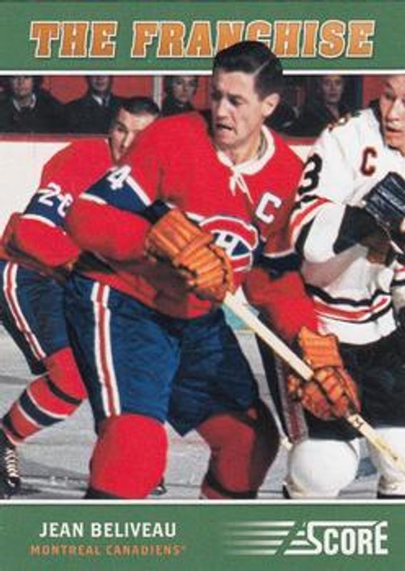 The Jean Beliveau 2012 Score #OS4 The Franchise Original Six card is 1 of 2 Jean Beliveau's card variations in the 2012 Score set being tracked by Sports Card Investor, including Franchise Original Six Autographs /10.