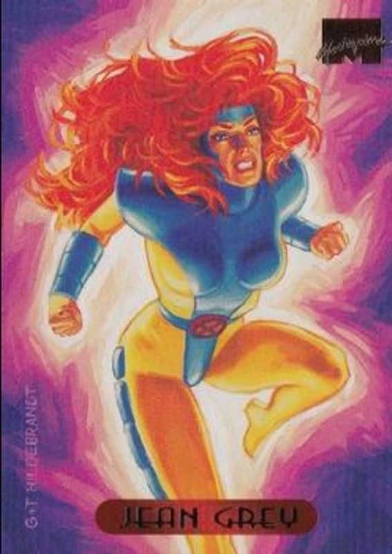 The Jean Grey 1994 Fleer Marvel Masterpieces Hildebrandt Brothers #45 Base card is 1 of 2 Jean Grey's card variations in the 1994 Fleer Marvel Masterpieces Hildebrandt Brothers set being tracked by Sports Card Investor, including Gold Foil Signatures.