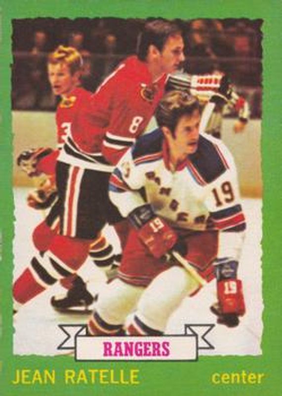 The Jean Ratelle 1973 O-Pee-Chee #141 Light Back card is 1 of 2 Jean Ratelle's card variations in the 1973 O-Pee-Chee set being tracked by Sports Card Investor, including Base.