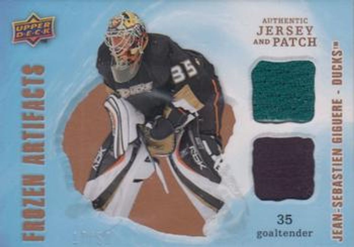 Jean-Sebastien Giguere 2008 Upper Deck Artifacts #FAD-JG Frozen Artifacts Jersey Patch Combo /50 RAW Price Guide