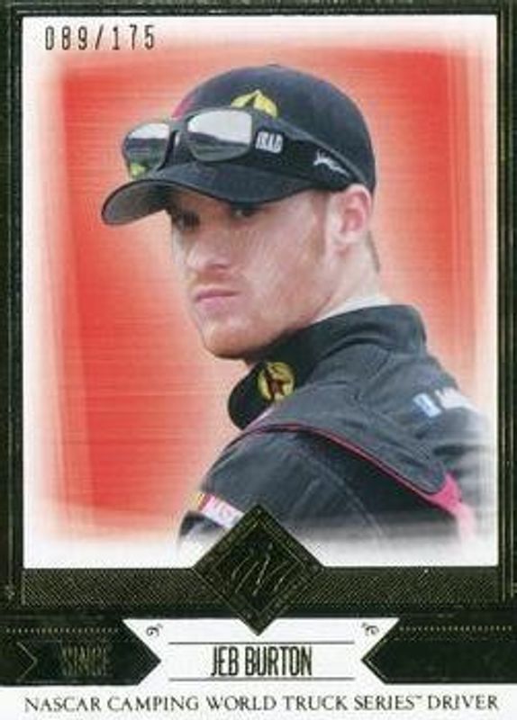 The Jeb Burton 2014 Press Pass Total Memorabilia #41 Gold /175 card is 1 of 8 Jeb Burton's card variations in the 2014 Press Pass Total Memorabilia set being tracked by Sports Card Investor, including Base, Red, Black & White /99, Dirt Track Treads Silver /99, and Dirt Track Treads - Gold /50.