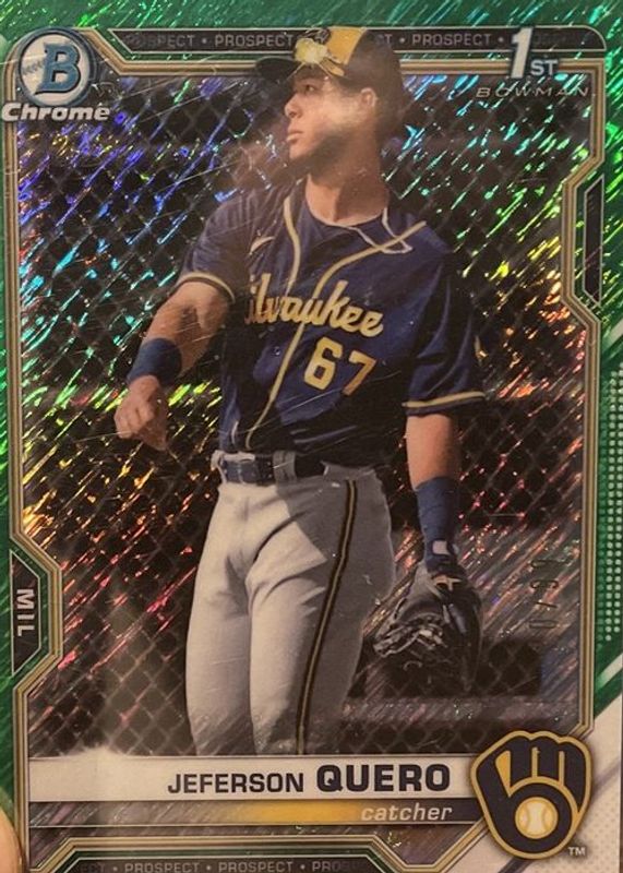 The Jeferson Quero 2021 Bowman Chrome #BCP-181 Prospects - Green Shimmer Refractor /99 (1st) card in Raw condition has not changed in price in the last 30 days and was last sold for $28.53 .
