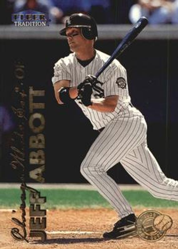 The Jeff Abbott 1999 Fleer Tradition #298 Millennium card is 1 of 4 Jeff Abbott's card variations in the 1999 Fleer Tradition set being tracked by Sports Card Investor, including Base, Warning Track Collection, and Starting 9 /9.