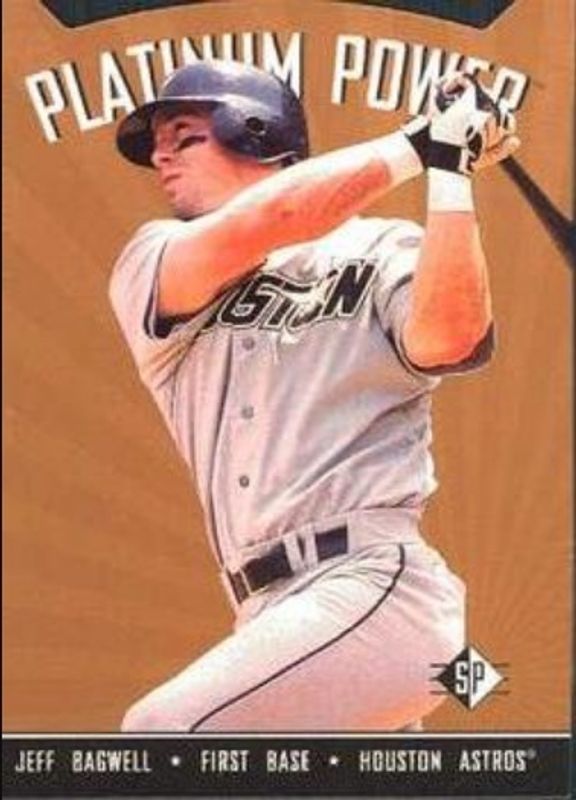 The Jeff Bagwell 1995 SP #PP1 Platinum Power card is 1 of 4 Jeff Bagwell's card variations in the 1995 SP set being tracked by Sports Card Investor, including Base, Superbafoil, and Special FX.