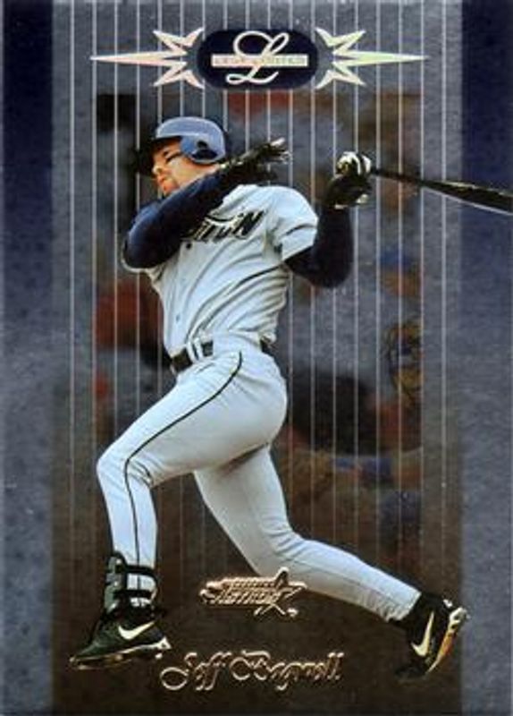 The Jeff Bagwell 1996 Leaf Limited #9 Base card is 1 of 4 Jeff Bagwell's card variations in the 1996 Leaf Limited set being tracked by Sports Card Investor, including Gold, Lumberjacks /5000, and Lumberjacks - Black /500.