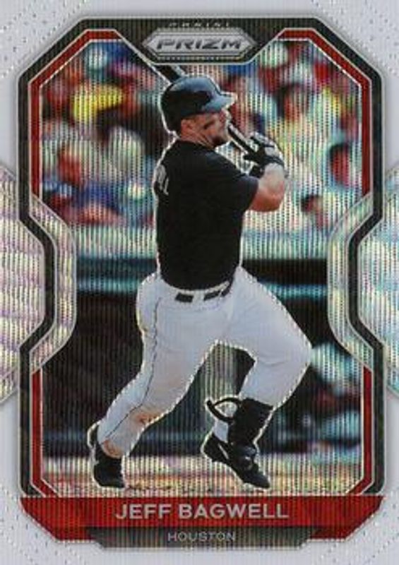 The Jeff Bagwell 2021 Prizm #40 White Wave card is 1 of 43 Jeff Bagwell's card variations in the 2021 Prizm set being tracked by Sports Card Investor, including Base, Blue, Blue Velocity, Carolina Blue, and Cosmic Haze.