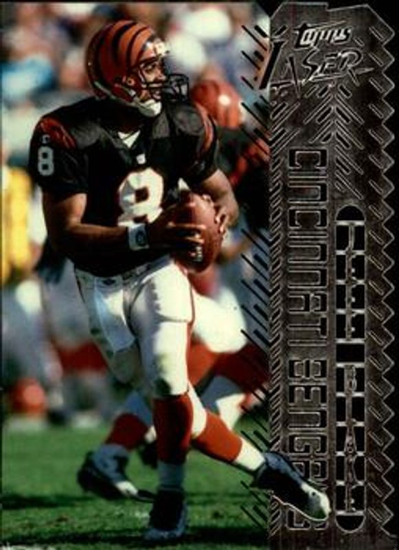 The Jeff Blake 1996 Topps Laser #122 Base card is 1 of 2 Jeff Blake's card variations in the 1996 Topps Laser set being tracked by Sports Card Investor, including Stadium Stars.