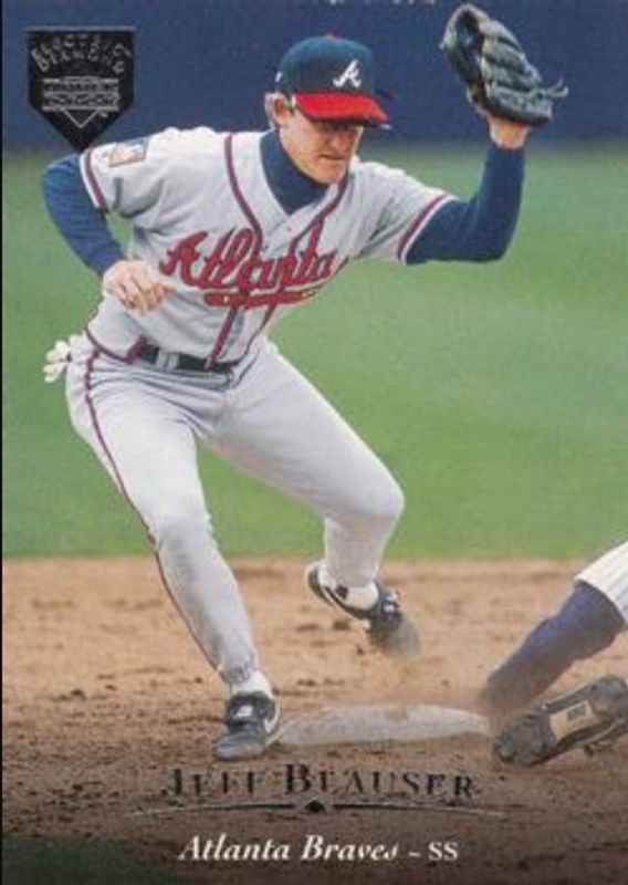 The Jeff Blauser 1995 Upper Deck #44 Electric Diamond card is 1 of 3 Jeff Blauser's card variations in the 1995 Upper Deck set being tracked by Sports Card Investor, including Base, and Electric Diamond Gold.