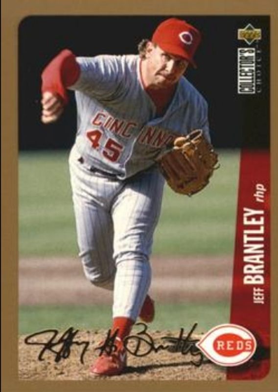 The Jeff Brantley 1996 Upper Deck Collector's Choice #117 Gold Signatures card is 1 of 3 Jeff Brantley's card variations in the 1996 Upper Deck Collector's Choice set being tracked by Sports Card Investor, including Base, and Silver Signatures.