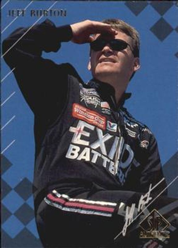 The Jeff Burton 1998 SP Authentic #9 Base card is 1 of 6 Jeff Burton's card variations in the 1998 SP Authentic set being tracked by Sports Card Investor, including Base, Behind the Wheel, Behind the Wheel - Gold, Behind the Wheel Die-Cut /100, and Sign of the Times - Red /45.