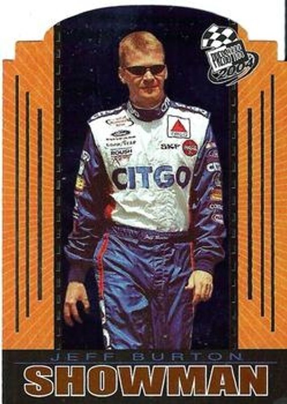 The Jeff Burton 2004 Press Pass #S-1A Showman card is 1 of 13 Jeff Burton's card variations in the 2004 Press Pass set being tracked by Sports Card Investor, including Base, Beckett Samples, Platinum, Platinum Variations, and eBay Previews /5.