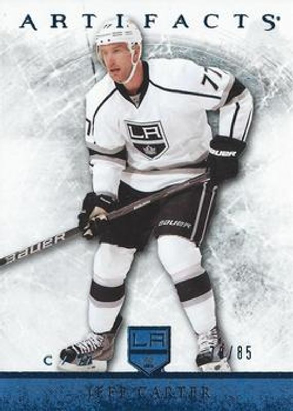 The Jeff Carter 2012 Upper Deck Artifacts #38 Sapphire /85 card is 1 of 15 Jeff Carter's card variations in the 2012 Upper Deck Artifacts set being tracked by Sports Card Investor, including Base /699, Emerald /99, Gold Spectrum /25, Frozen Artifacts Jerseys Blue, and Jersey Jersey /125.