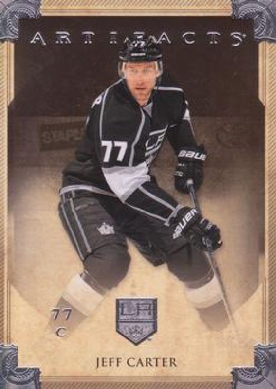 The Jeff Carter 2013 Upper Deck Artifacts #39 Base /899 card is 1 of 18 Jeff Carter's card variations in the 2013 Upper Deck Artifacts set being tracked by Sports Card Investor, including Ruby /299, Emerald /99, Sapphire /85, Spectrum /25, and Black /5.