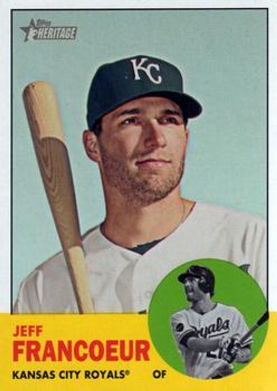 The Jeff Francoeur 2012 Topps Heritage #282a Base card is 1 of 2 Jeff Francoeur's card variations in the 2012 Topps Heritage set being tracked by Sports Card Investor, including Base.