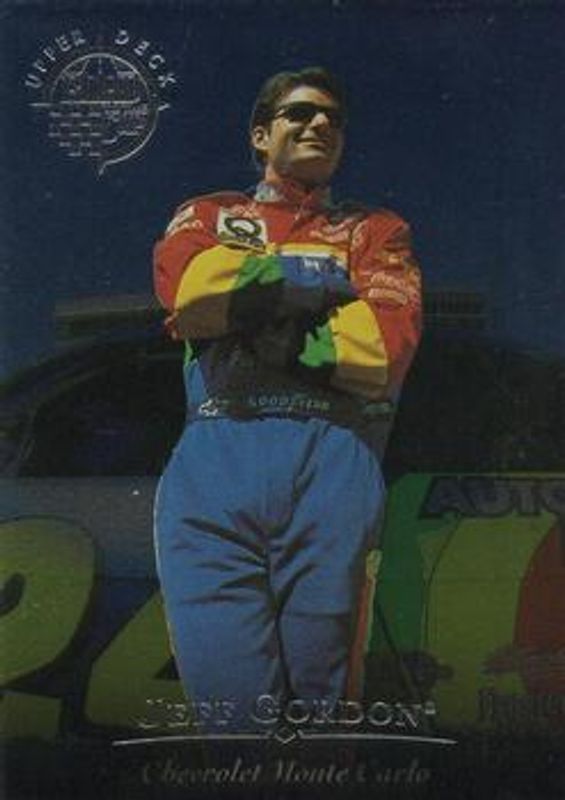 The Jeff Gordon 1996 Upper Deck Road to the Cup #RC1a Base card is 1 of 33 Jeff Gordon's card variations in the 1996 Upper Deck Road to the Cup set being tracked by Sports Card Investor, including #RC1b Base, #RC51a Base, #RC51b Base, #H1 Autographs, and #DC-3a Diary of a Champion.