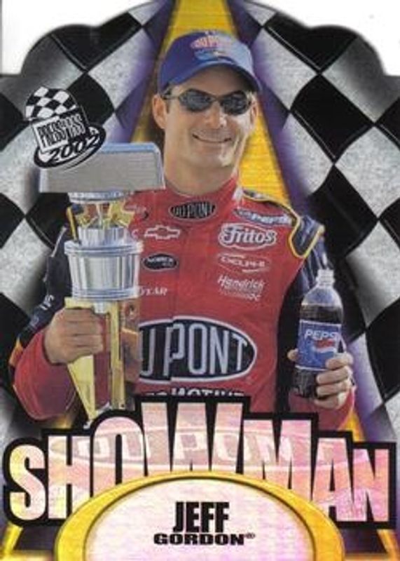The Jeff Gordon 2002 Press Pass #S-3A Showman card is 1 of 19 Jeff Gordon's card variations in the 2002 Press Pass set being tracked by Sports Card Investor, including #11 Base, #66 Base, #99 Base, #P11 Platinum, and #P99 Platinum.