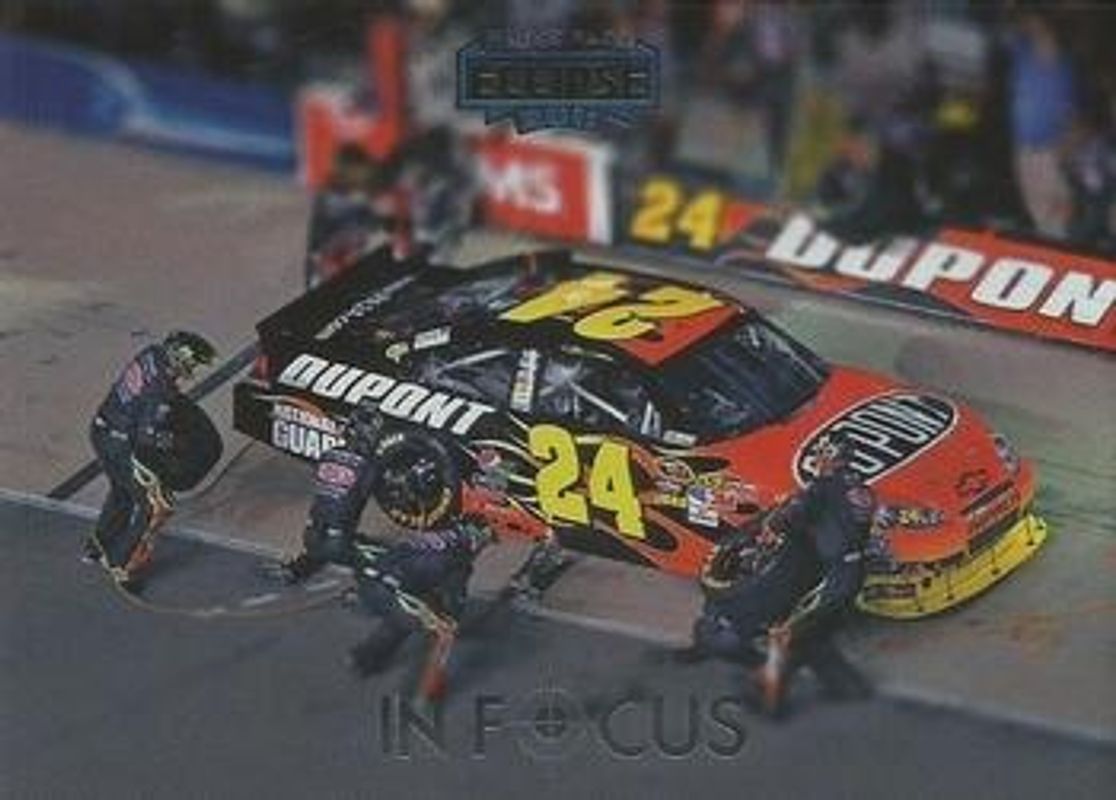 The Jeff Gordon 2011 Press Pass Eclipse #IF-1 In Focus card is 1 of 25 Jeff Gordon's card variations in the 2011 Press Pass Eclipse set being tracked by Sports Card Investor, including #90 Base, #76 Base, #11 Base, #64 Base, and #76 Blue.