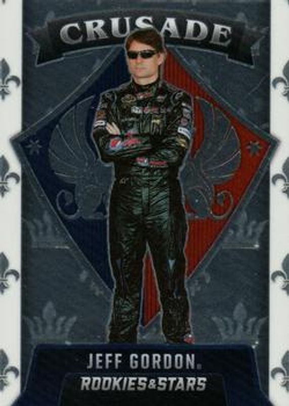 The Jeff Gordon 2022 Chronicles NASCAR #3 Crusade card is 1 of 141 Jeff Gordon's card variations in the 2022 Chronicles NASCAR set being tracked by Sports Card Investor, including Black, Black Green, Clearly Donruss, Clear Vision, and Crusade Green.